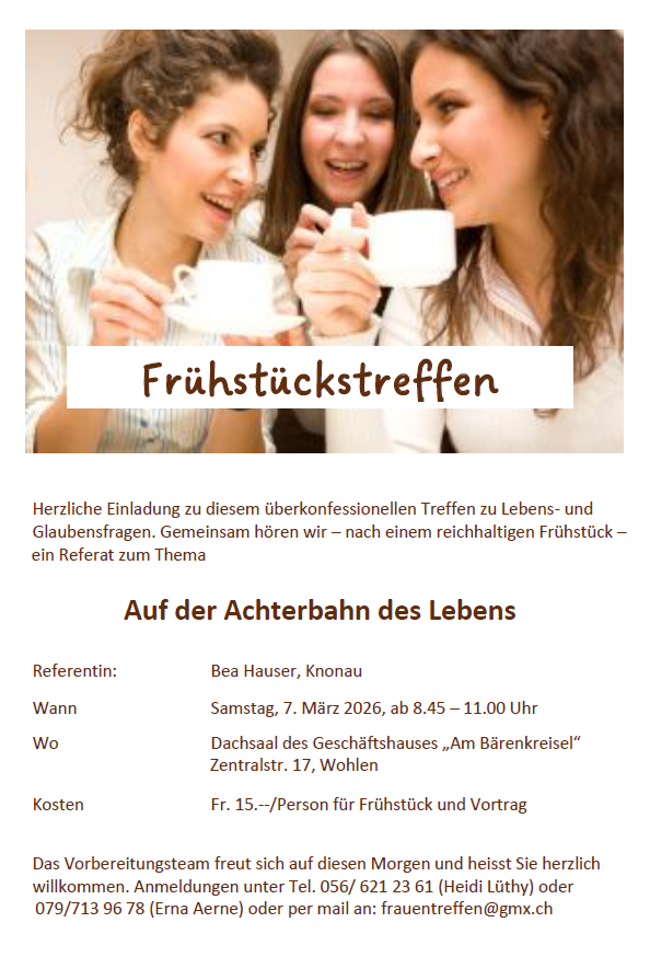 Ansprechperson für Auskünfte und Anmeldung: Rita Haudenschild | 044 767 90 09 | r.haudenschild@nilemail.org
